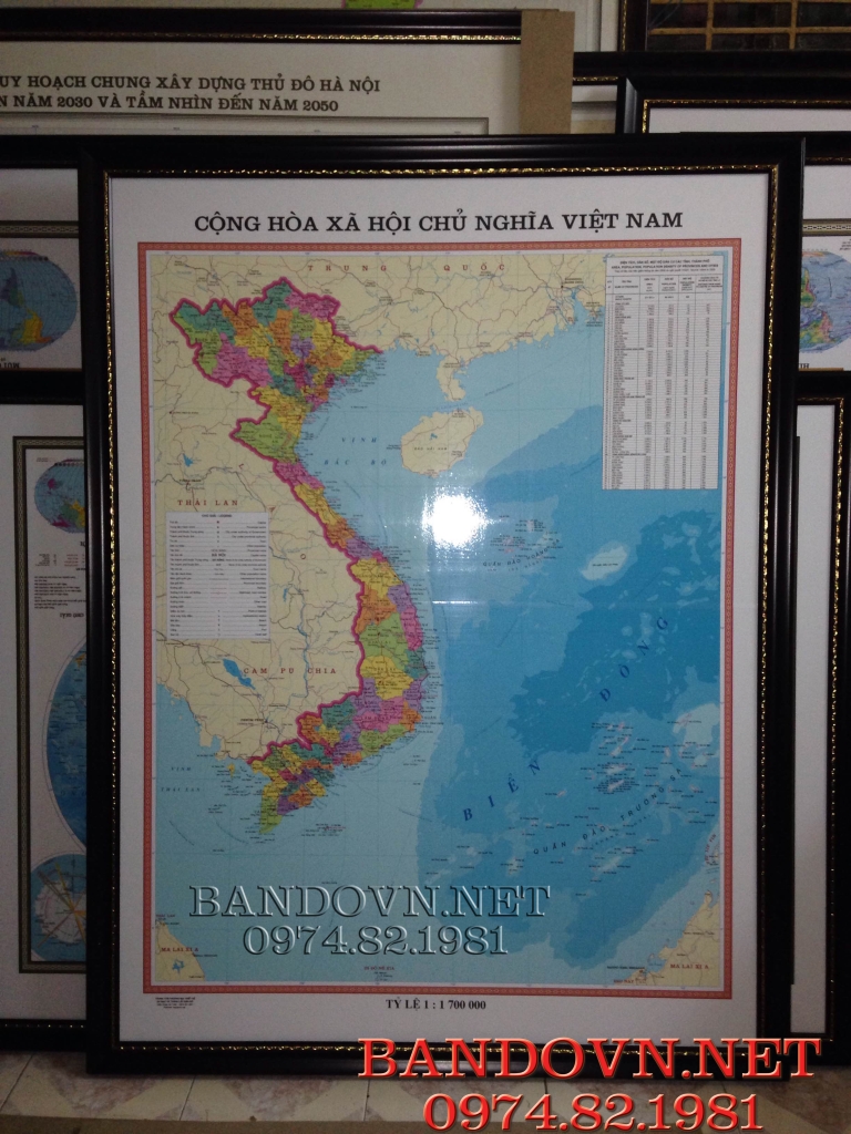 Bản đồ ĐÓNG KHUNG hoàn chỉnh các kích thước Quý khách Vui lòng liên hệ để có báo giá cụ thể.